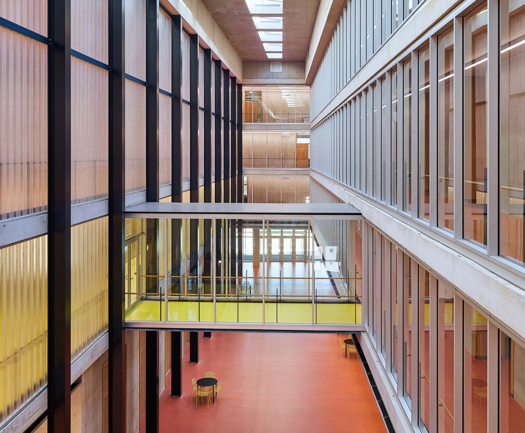 Comme la structure en acier est exposée à l’extérieur, aucune protection contre les incendies n’a été mise en place, mais un traitement anti-corrosion spécifique a été appliqué à l’ensemble des structures en acier : portantes, façades et toitures.