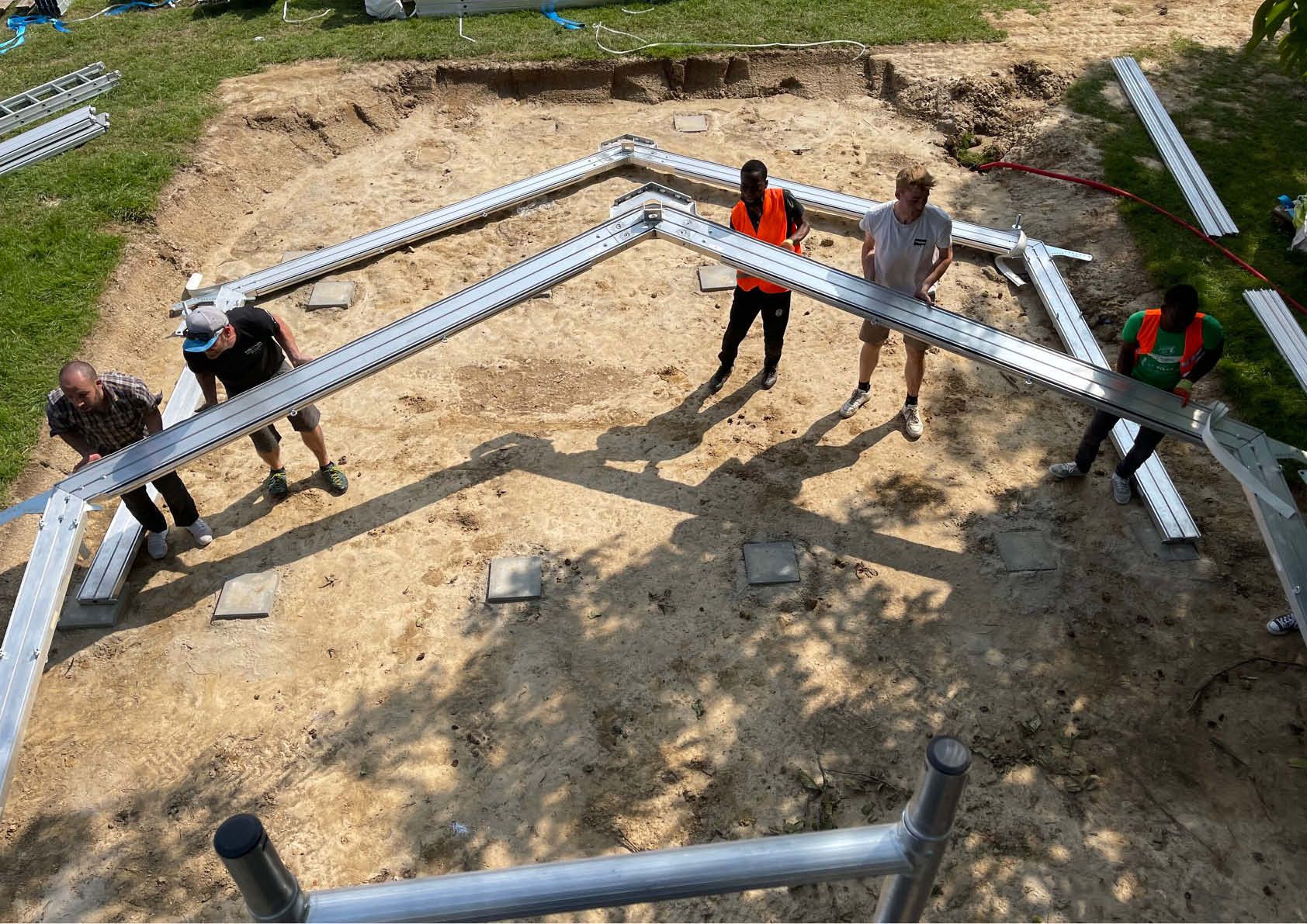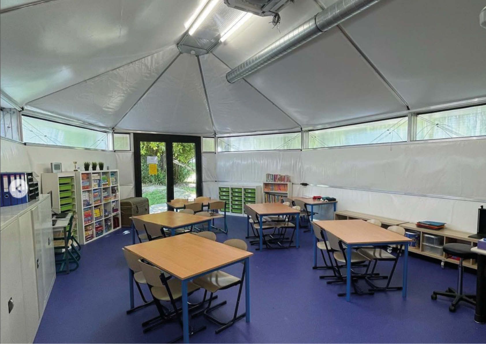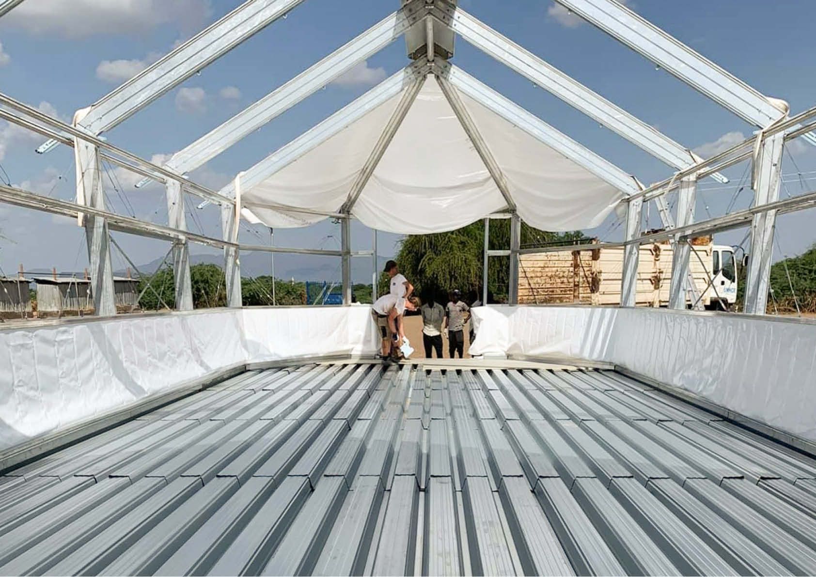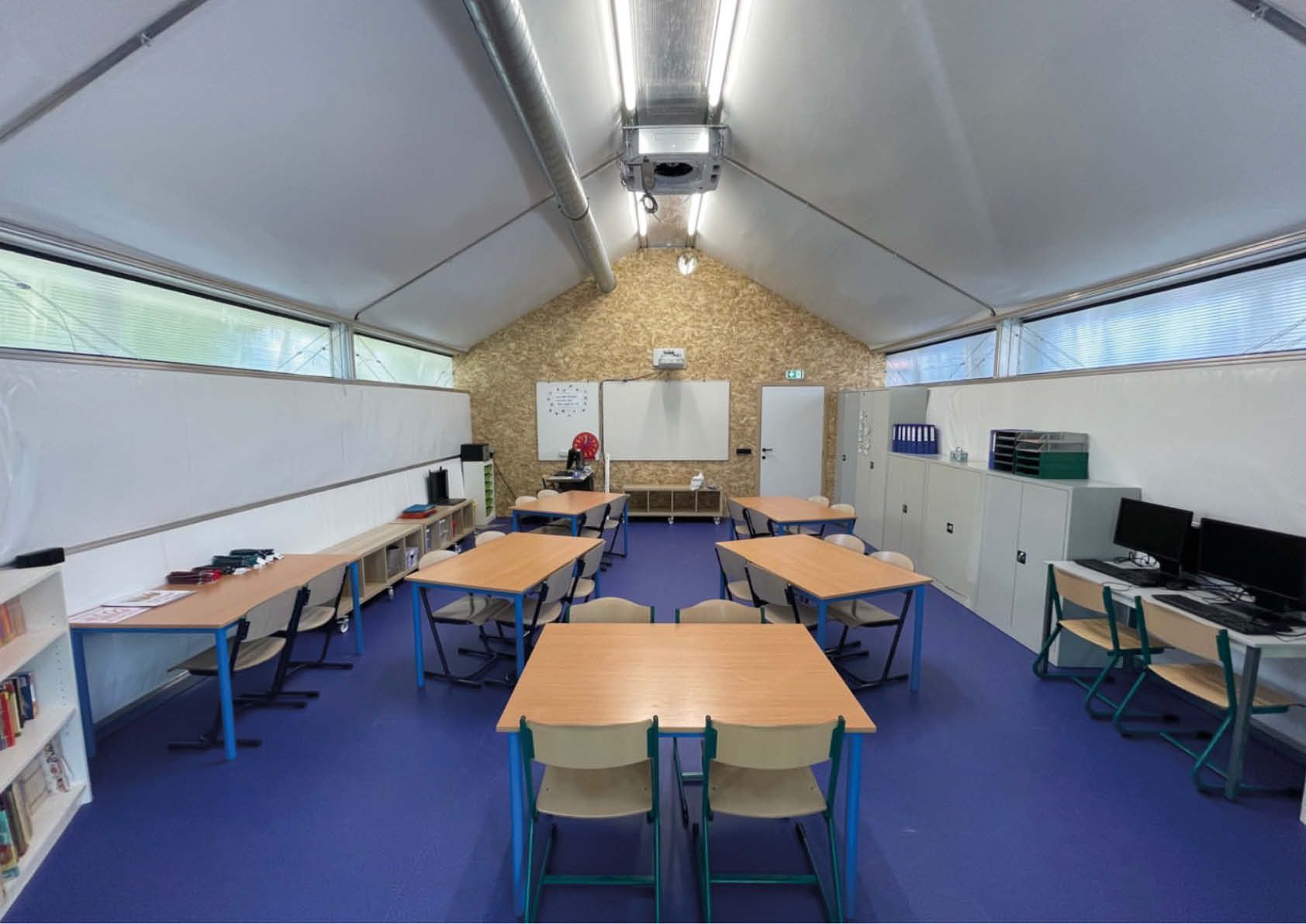 Le projet a été déployé en juillet 2021 avec l’aide de demandeurs d’asile, dans lequel deux « Maggie Shelters » de faible indice énergétique et composés de quatre locaux de classe, ont été posés sur le terrain de l’école De Kraal à Herent pendant trois ans, pour ensuite être démontés et réutilisés dans le projet du sud.