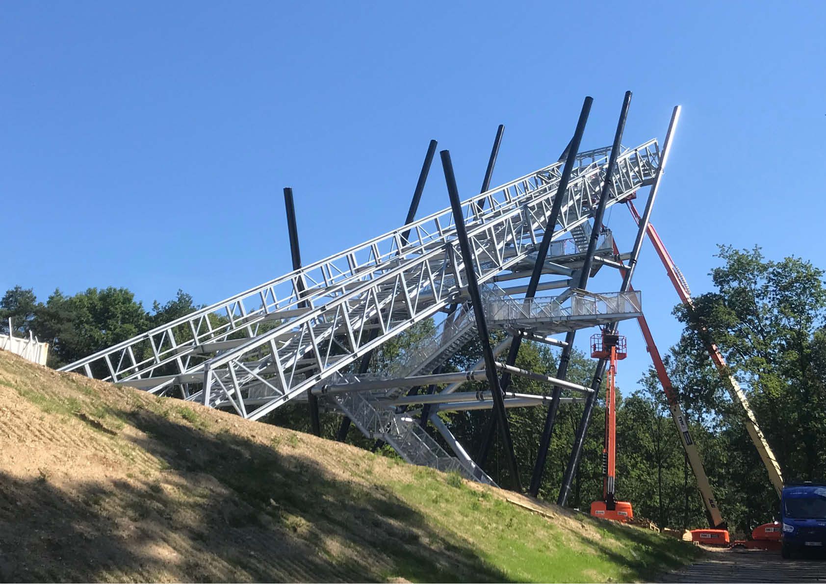 Deux dry slopes ont récemment vu le jour à Genk. Il s’agit de rampes artificielles qui imitent les propriétés de la neige. Pour s'envoler dans les airs, les athlètes de sports d'hiver professionnels s'élancent sur une rampe d'une hauteur d'environ 35 mètres. La structure se constitue de deux longues poutres de 55 mètres avec une inclinaison de 30°, avec entre elles des profilés IPE400 boulonnés qui soutiennent le tablier métallique, revêtu de tapis en plastique.