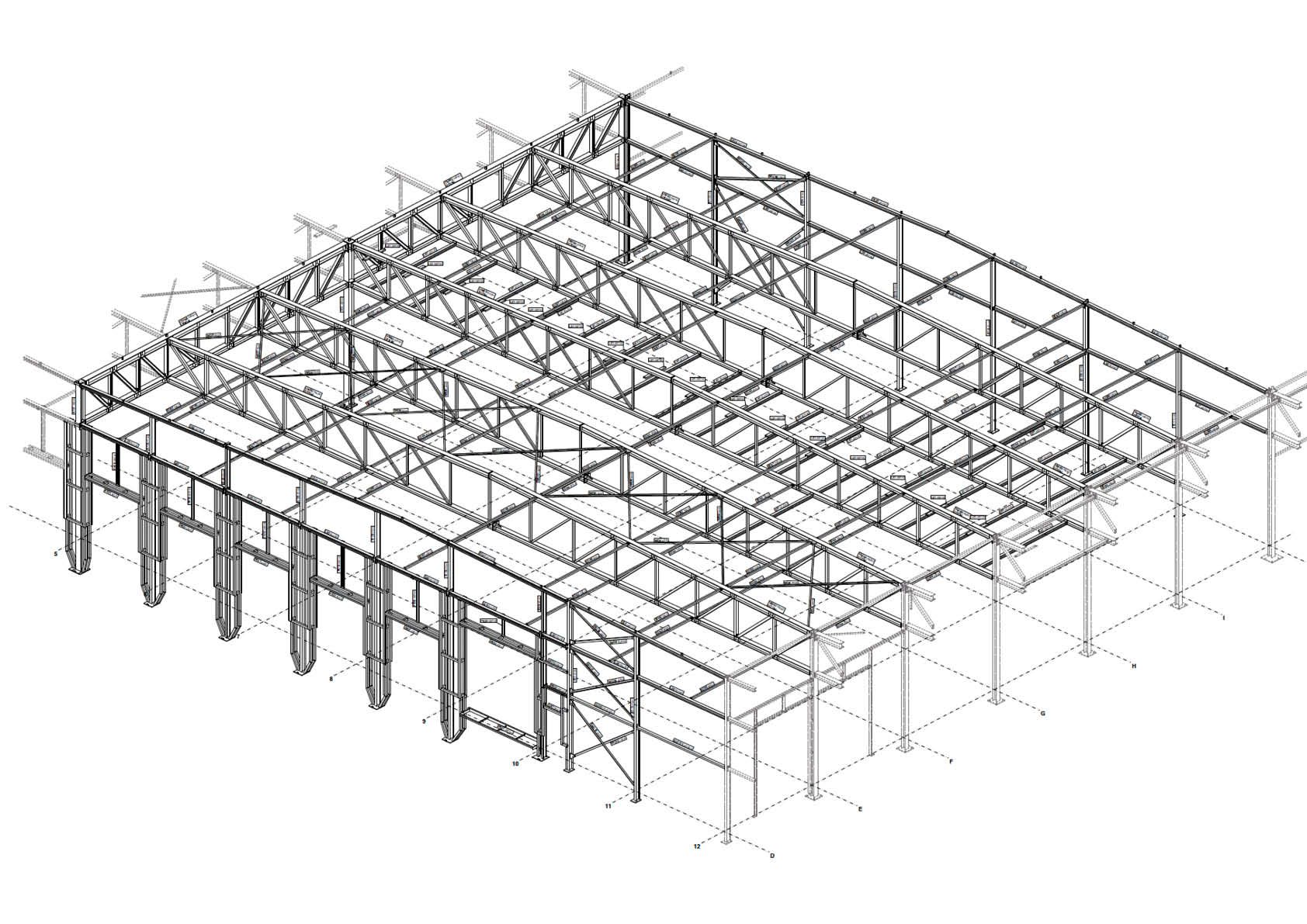 À l'exception de la partie technique, le bâtiment a été construit entièrement en structure d'acier (370 tonnes au total). Le hall de conditionnement est construit à l'aide de poutres pleines et les chambres froides à l'aide de structures en treillis dont la portée peut atteindre 40 mètres, afin de créer les plus grands espaces ouverts possibles. Tant les façades (environ 6000 m²) que les murs et plafonds rafraîchissants (2900 et 6500 m² respectivement) sont constitués de panneaux sandwichs métalliques, soumis à des exigences acoustiques spécifiques. La zone des bureaux est revêtue de simples panneaux muraux et la toiture d'environ 7400 m² de tôles en acier.