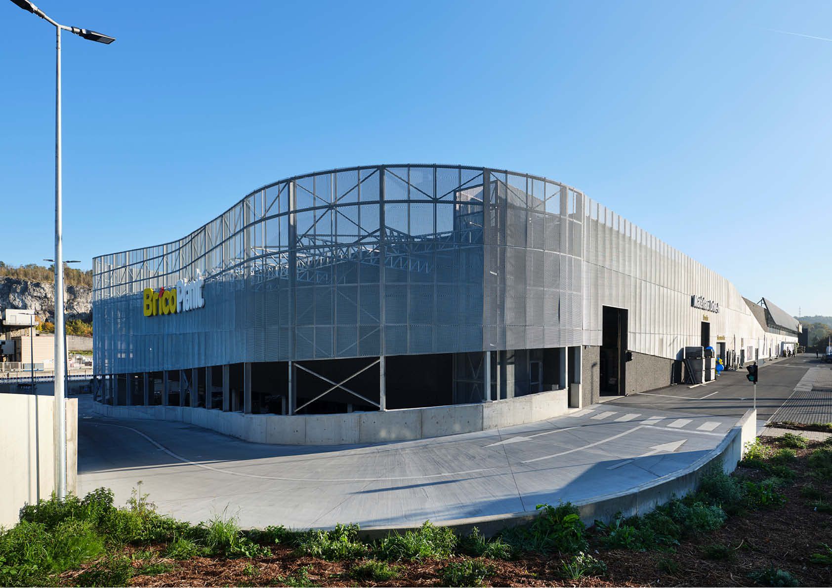 Le magasin BricoPlanit de Jambes a fait peau neuve, dans tous les sens du terme. Sa surface commerciale et de stockage a été plus que doublée pour répondre aux attentes de la clientèle, mais également du personnel. La structure en béton a été recouverte, sur quasi toute sa surface, d’un bardage de façade en métal déployé.
