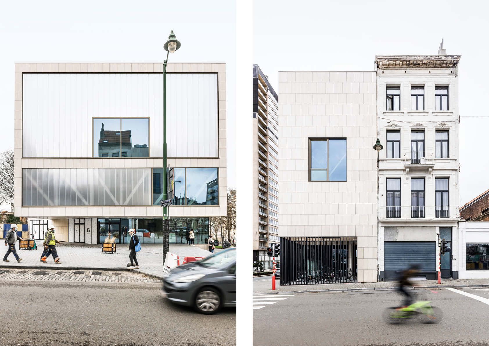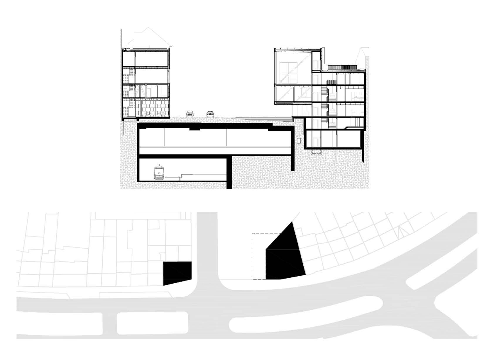 Malgré l’espace limité disponible pour les fondations - le métro traverse en diagonale le complexe - la surface utile a pu être maximalisée. Cela grâce à d’ingénieuses structures métalliques en treillis, en partie laissées visibles, qui permettent même un impressionnant porte-à-faux dans le plus grand des deux nouveaux volumes.