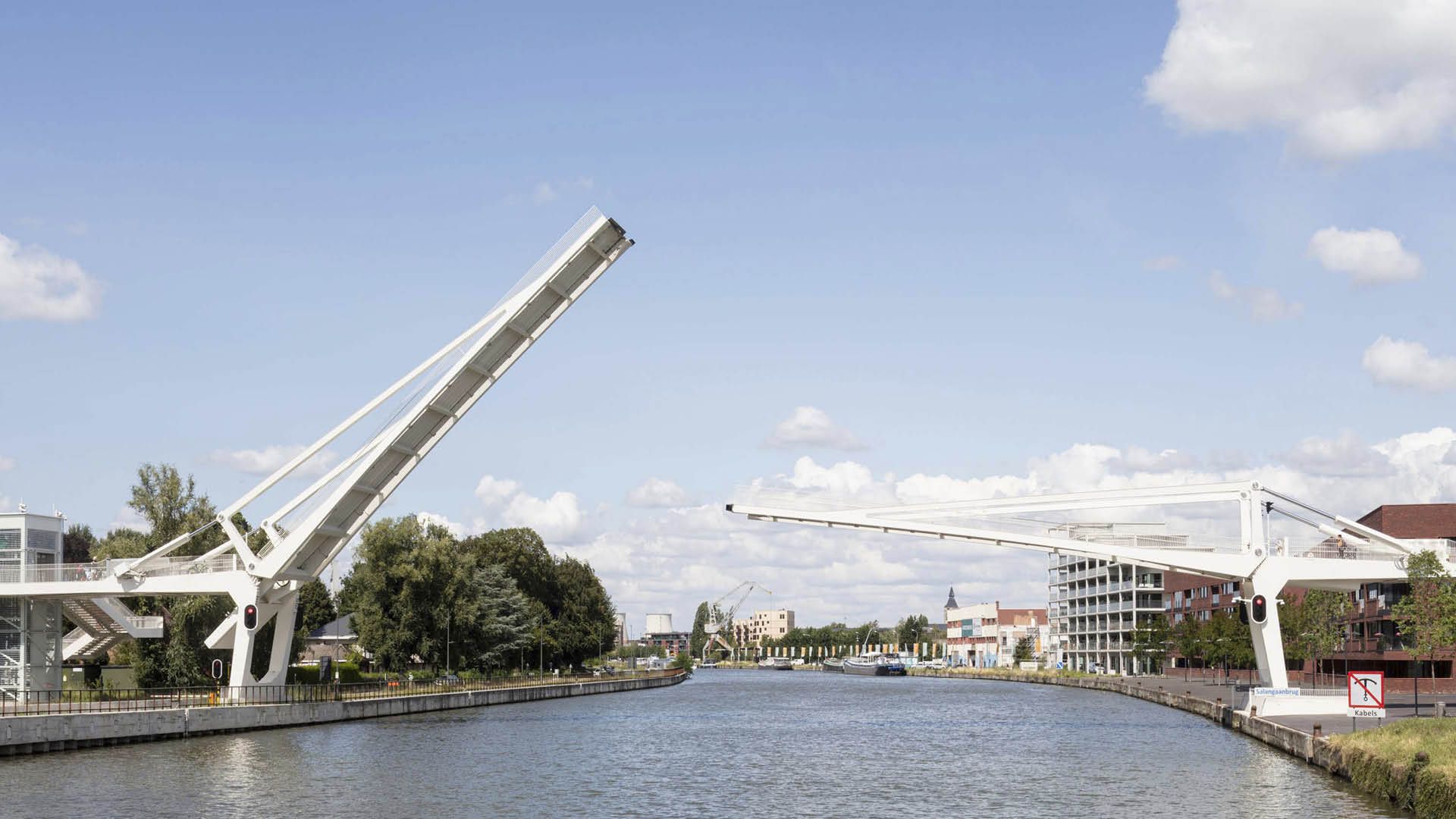 Le pont mobile sur le canal maritime Bruxelles-Escaut crée un nouveau lien entre le centre de Vilvorde et les nouveaux développements urbains sur la rive droite et le Parc des Trois Fontaines sur la rive gauche.