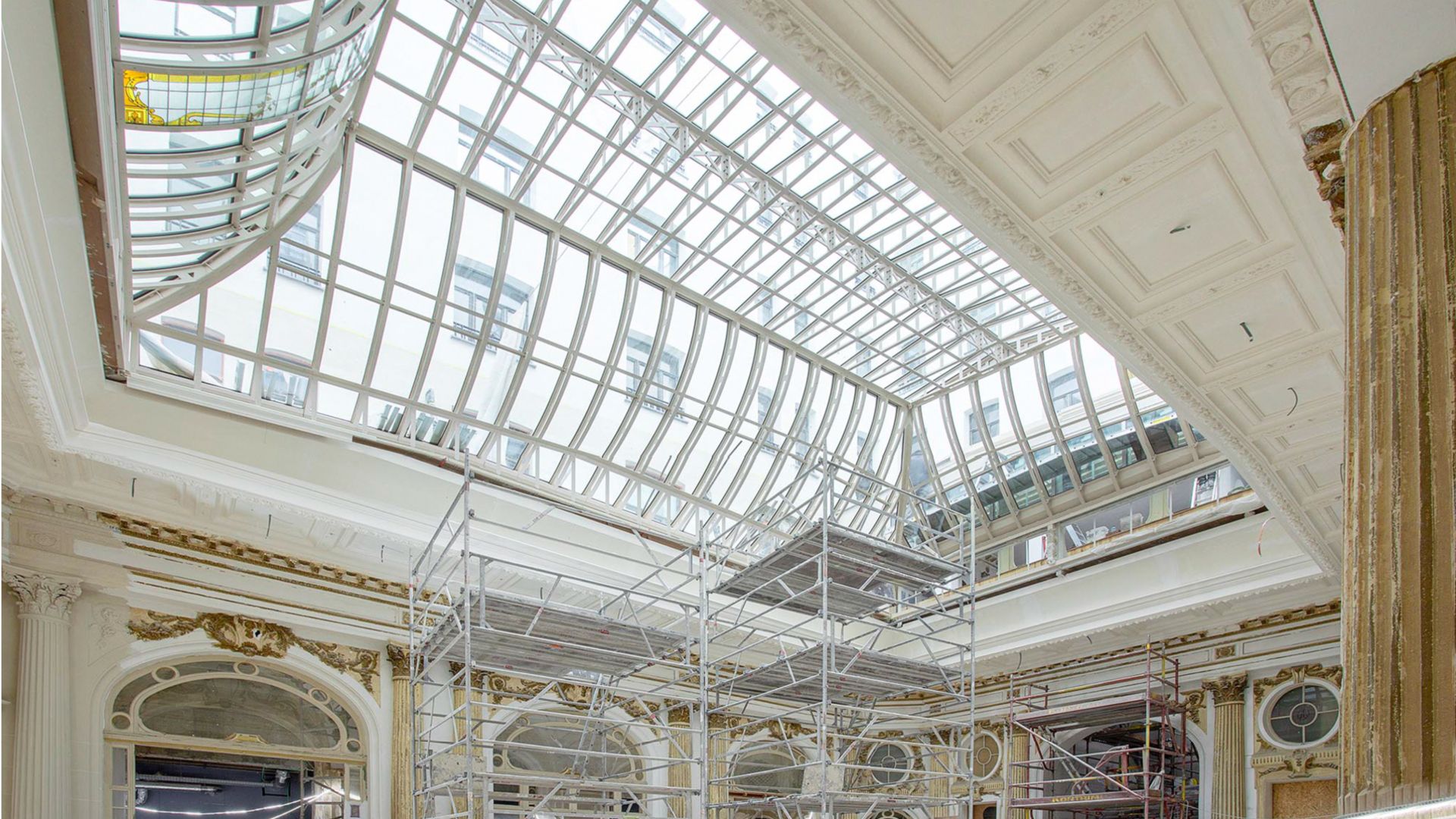 Dans le cadre de la restauration de l’hôtel Astoria (Group Corinthia Hotel) situé Rue Royale à Bruxelles, une verrière monumentale dans la zone patrimoniale du bâtiment a été restituée.